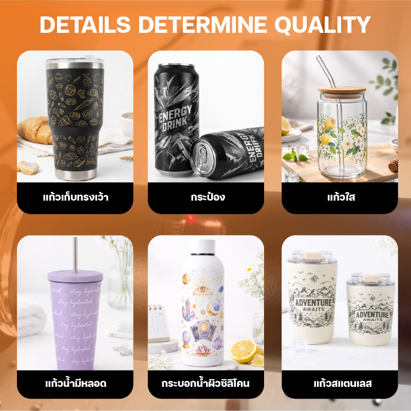 Vibrant Colors with Varnish: รองรับการพิมพ์หมึกขาวและเคลือบเงา (Varnish) ช่วยสร้างมิติให้ชิ้นงานดูพรีเมียมและทนทานต่อการขูดขีด.